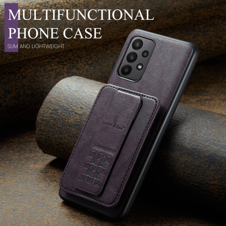 Funda para Teléfono Samsung Galaxy A73 Fierre Shann Oil Wax con Tarjetero de Cuero de Vaca (Púrpura)