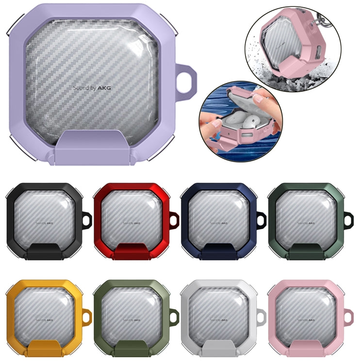 Funda Híbrida para Samsung Galaxy Buds2 / Live / Pro / FE PC TPU Fibra de Carbono Transparente con Gancho y Soporte (Rojo)