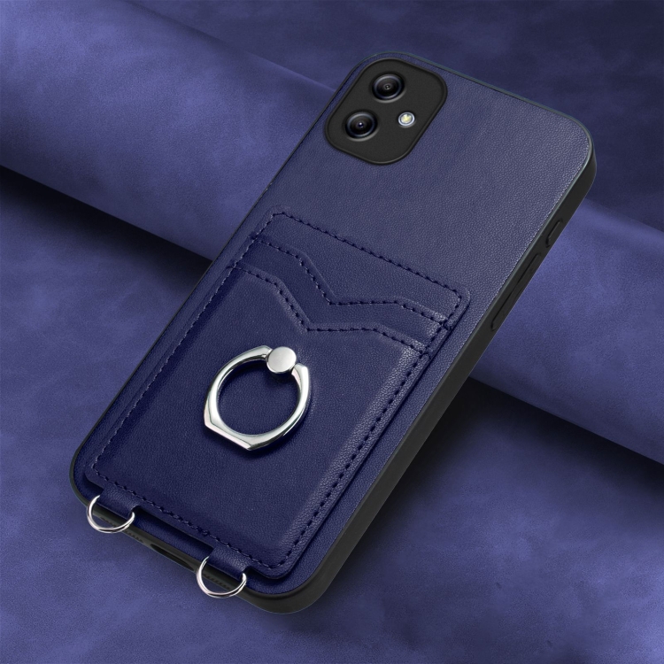 Estuche para Teléfono Samsung Galaxy F04 4G R20 con Soporte para Tarjeta y Anillo (Azul)