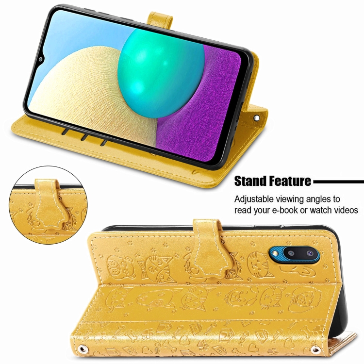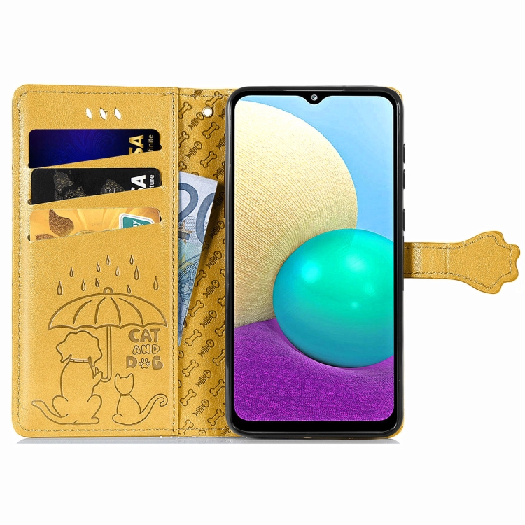 Funda Cuero Samsung Galaxy M02 A02 Horizontal Soporte Ranuras Tarjetas Billetera (Amarillo)