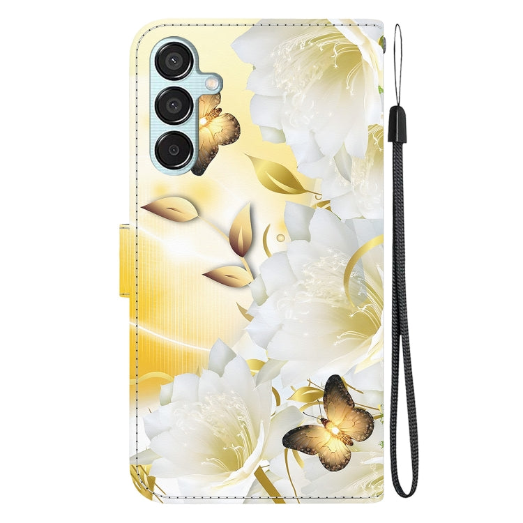 Estuche de Cuero Samsung Galaxy M15 F15 con Dibujo Textura de Cristal (Epiphyllum Mariposa Dorada)