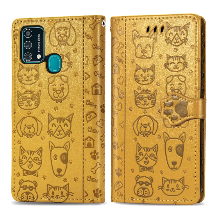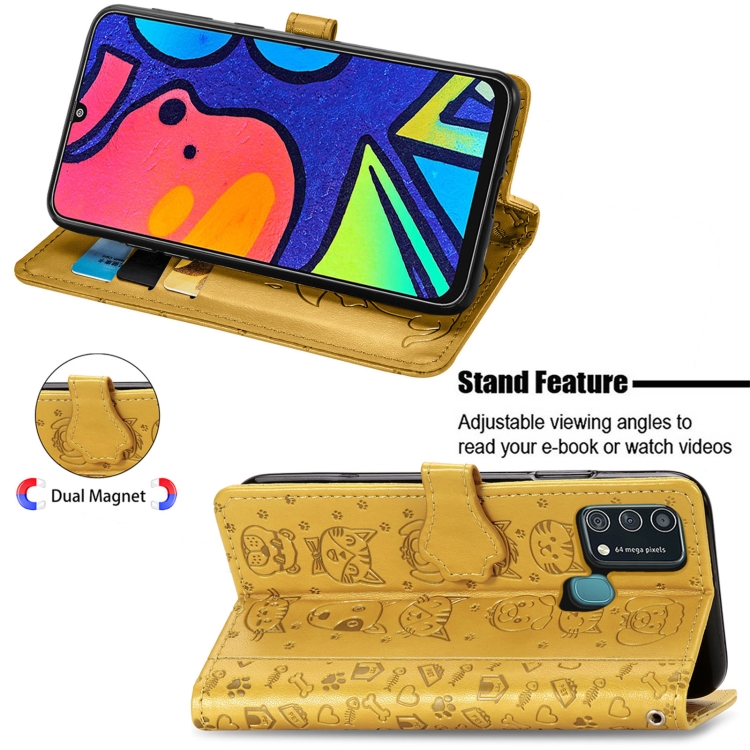 Funda Cuero Samsung Galaxy M21S F41 M31 Horizontal Soporte Ranuras Tarjetas (Amarillo)