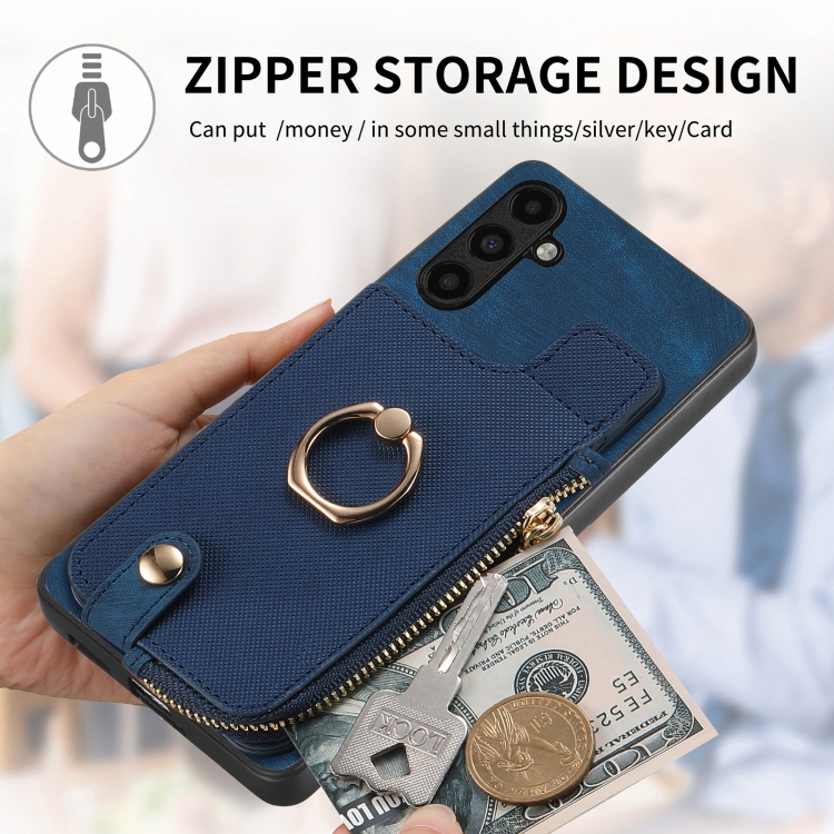 Funda para Teléfono Samsung Galaxy M32 4G con Anillo de Cuero Cruzado Cremallera Vertical y Billetera Trasera (Azul)