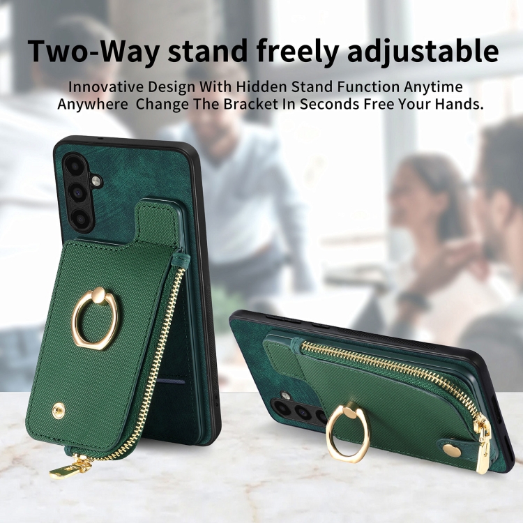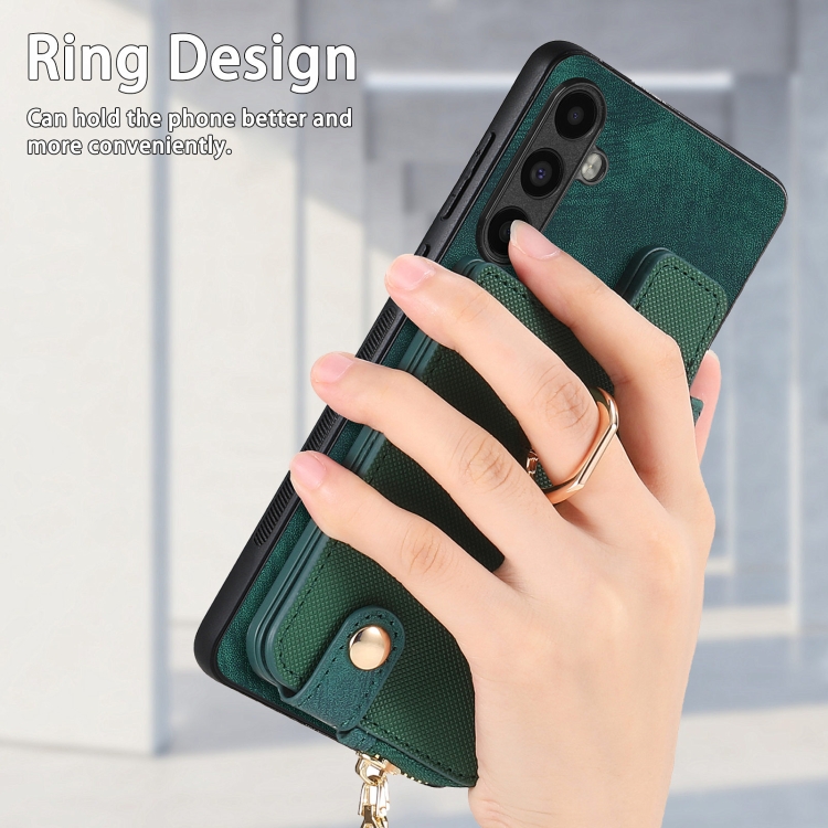 Funda para Teléfono Samsung Galaxy M32 4G con Anillo de Cuero Cruzado Cremallera Vertical y Billetera (Verde)