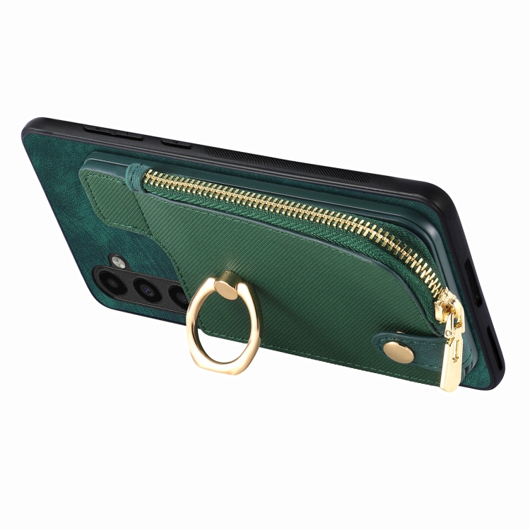 Funda para Teléfono Samsung Galaxy M33 5G Anillo Cuero Cruzado Cremallera Billetera (Verde)
