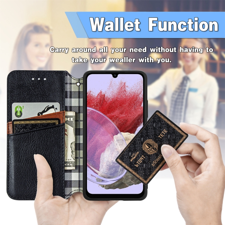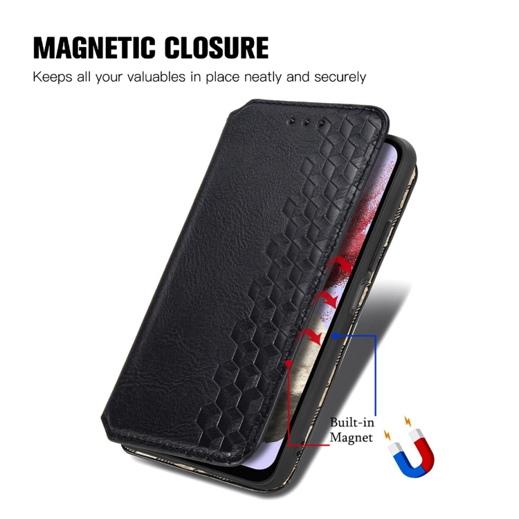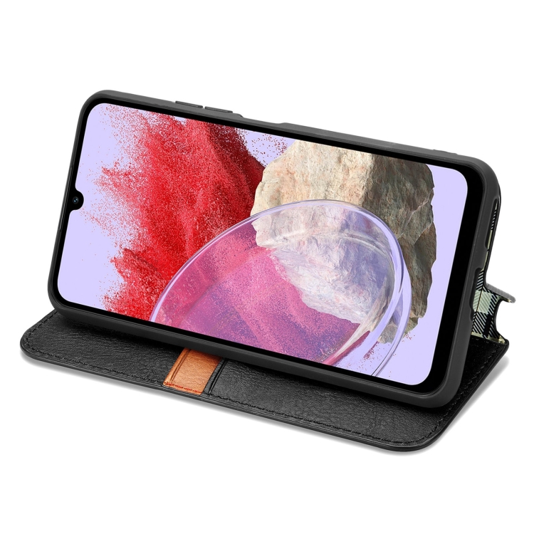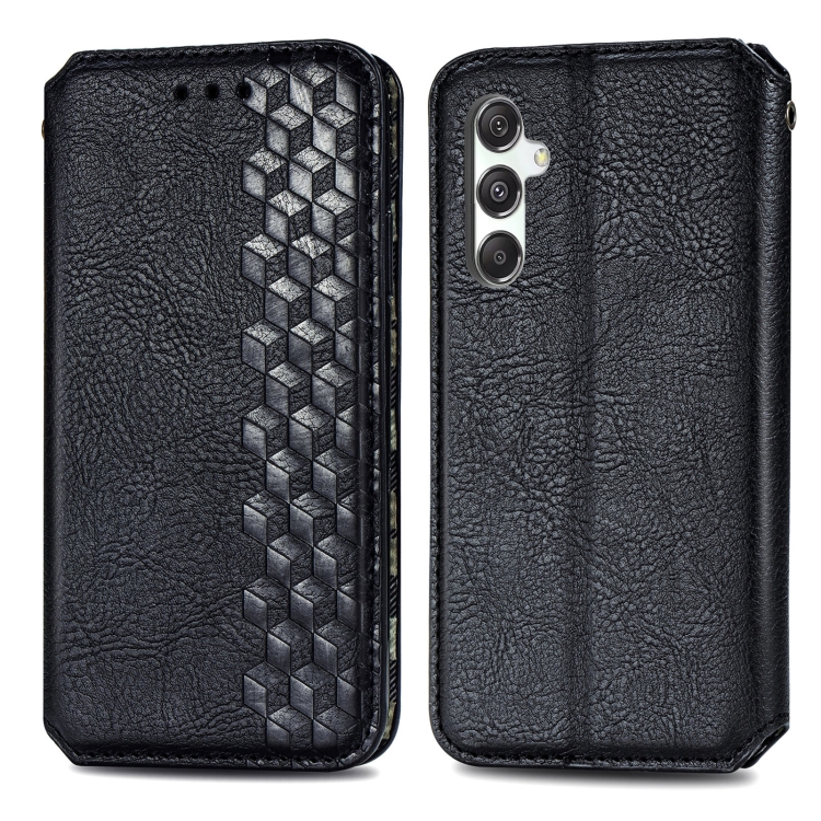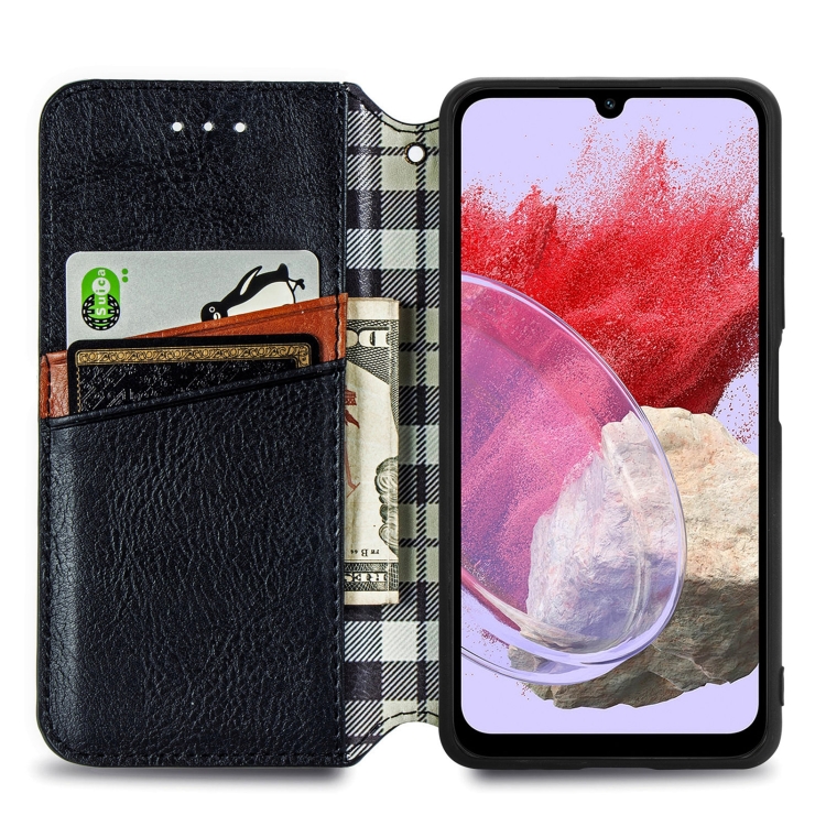 Funda para Teléfono Samsung Galaxy M34 5G Cuero Magnético Prensado Rejilla Cúbica (Negro)