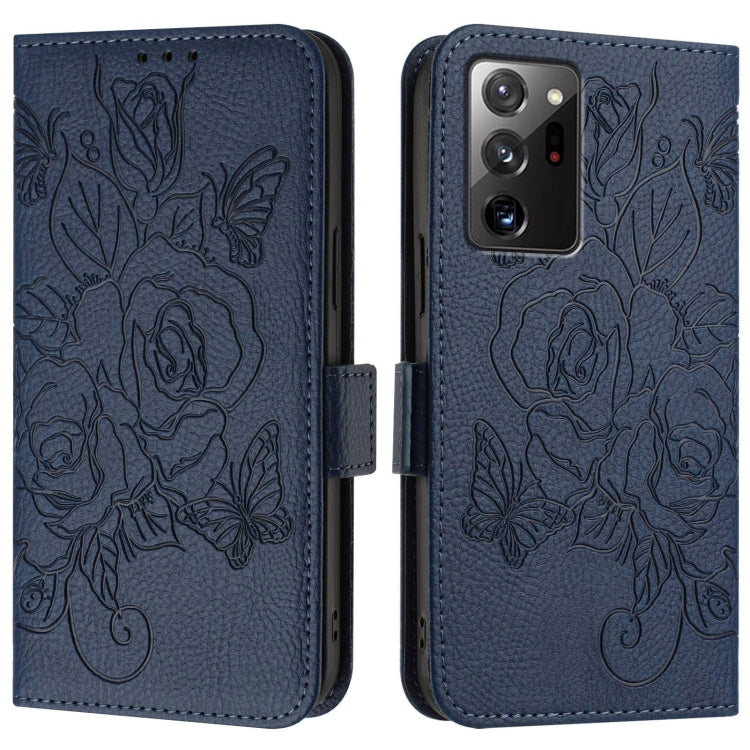 Estuche de Teléfono Samsung Galaxy Note20 Ultra Cuero Antirrobo Rfid con Relieve (Azul Oscuro)
