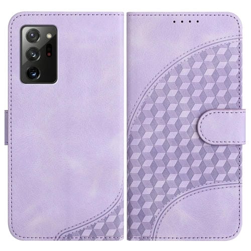 Funda para teléfono Samsung Galaxy Note20 Yx0060 de cuero con relieve de cabeza de elefante y cordón (Púrpura Claro)