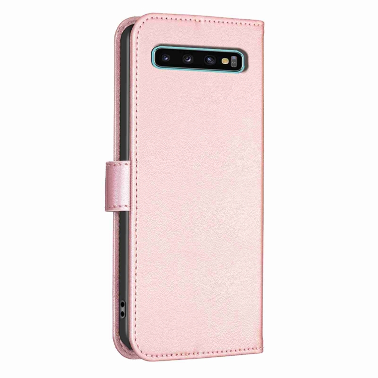 Funda de Cuero para Samsung Galaxy S10 con Relieve de Cuatro Hojas (Rosa)