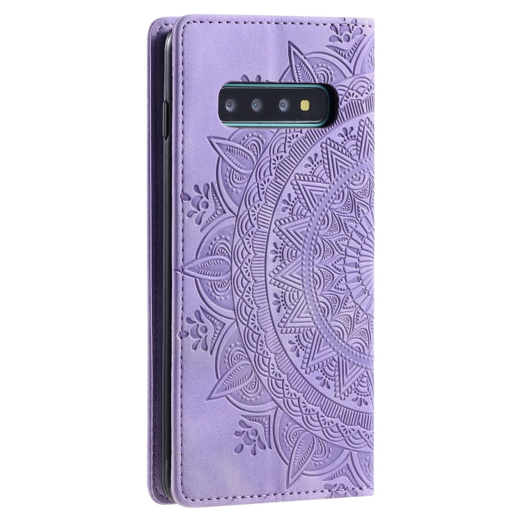 Estuche de Cuero Magnético Totem para Samsung Galaxy S10 en Relieve (Púrpura)