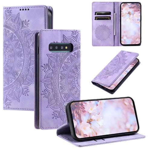 Funda de Cuero Magnética Totem para Samsung Galaxy S10 + en Relieve (Púrpura)