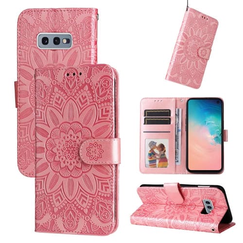 Estuche para Teléfono Samsung Galaxy S10E Cuero Estampado Girasol en Relieve (Rosa)