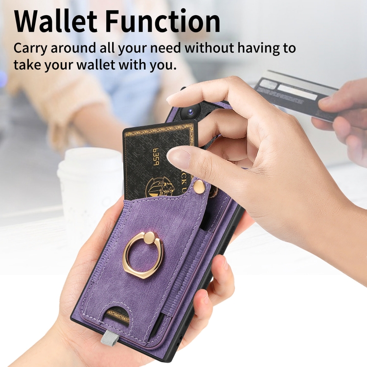 Estuche para Teléfono Samsung Galaxy S20 FE con Bolsa para Tarjeta Anillo y Lazo para Colgar (Púrpura)