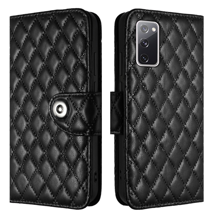 Funda para Teléfono Samsung Galaxy S20 FE Tapa de Cuero Textura Rómbica Cordón (Negro)