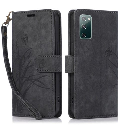 Funda para Teléfono Samsung Galaxy S20 FE Cuero Relieve Mariposa Orquídea (Negro)