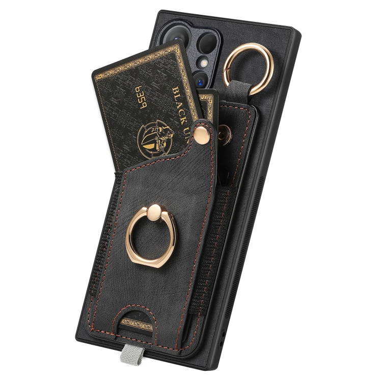 Funda para Teléfono Samsung Galaxy S20 con Bolsa para Tarjeta Anillo y Lazo (Negro)