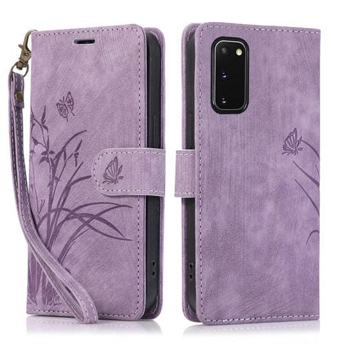 Funda para Samsung Galaxy S20 de Cuero con Relieve Mariposa Orquídea (Púrpura)