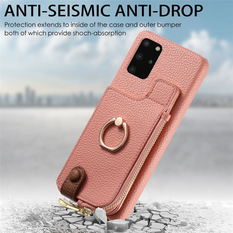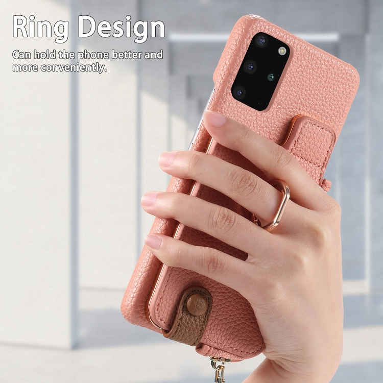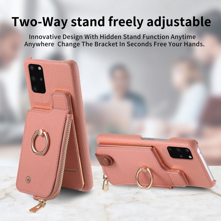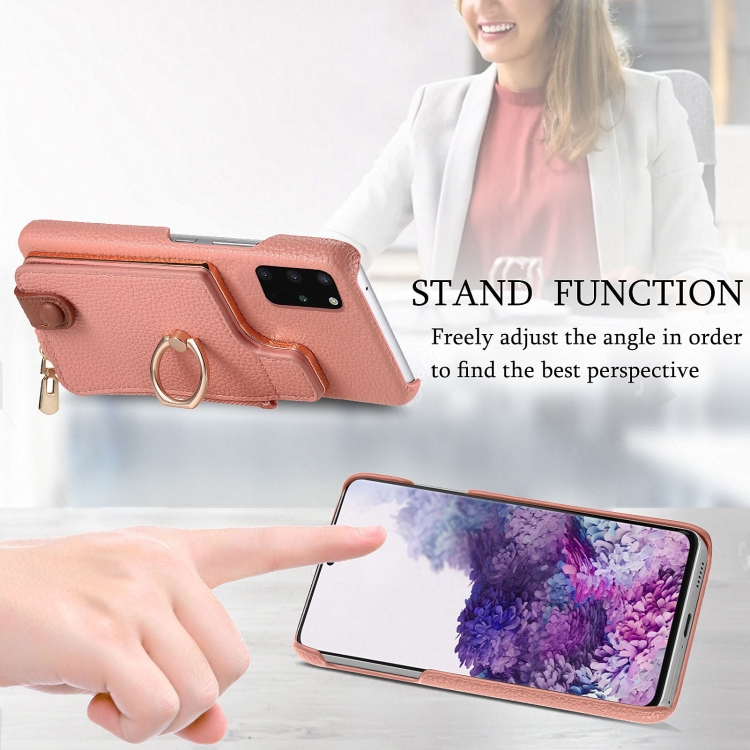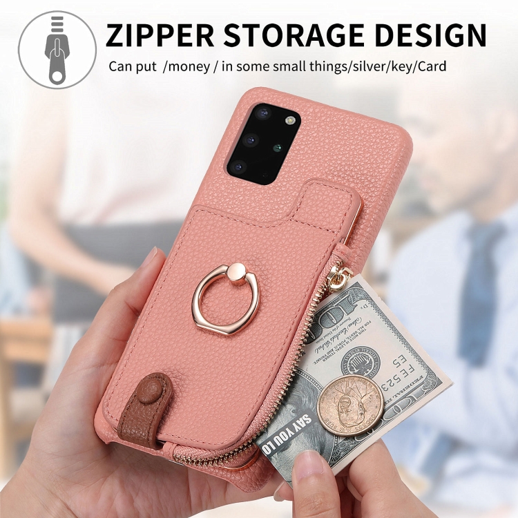 Funda Trasera para Samsung Galaxy S20 con Billetera, Cremallera y Anillo de Cuero Litchi (Rosa)