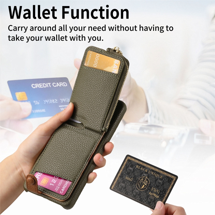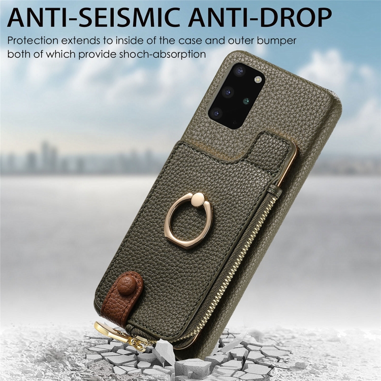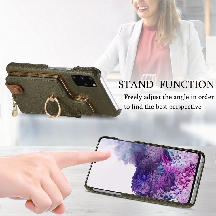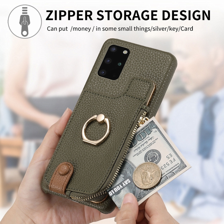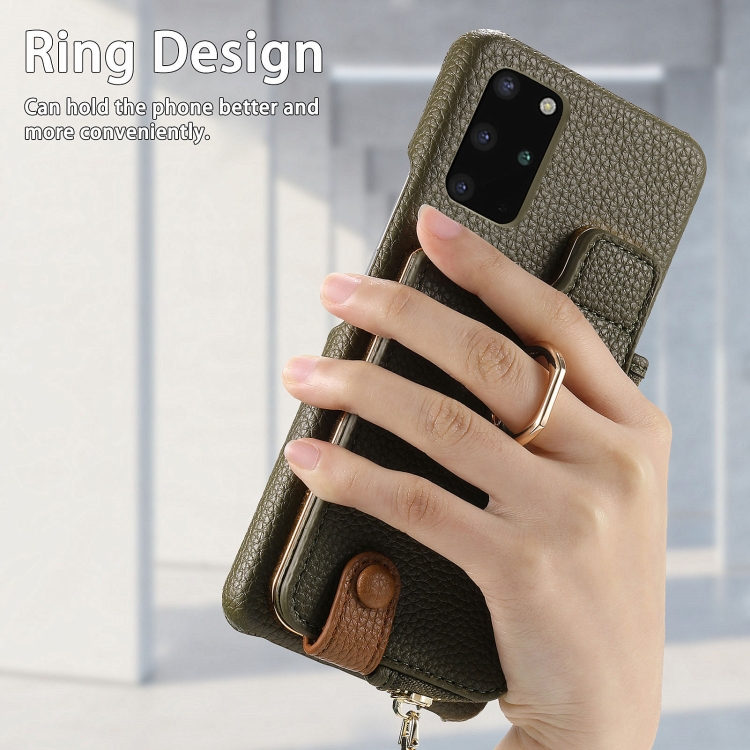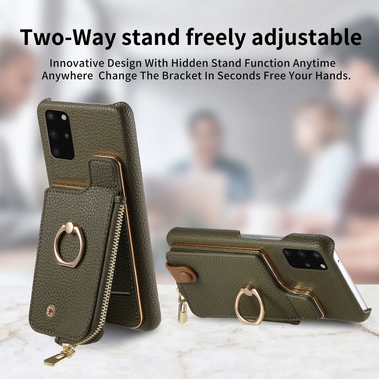 Funda Trasera para Samsung Galaxy S20 con Billetera, Cremallera y Anillo de Cuero Litchi (Verde)