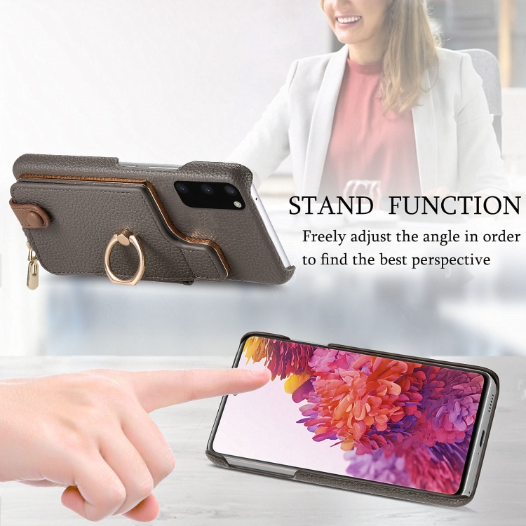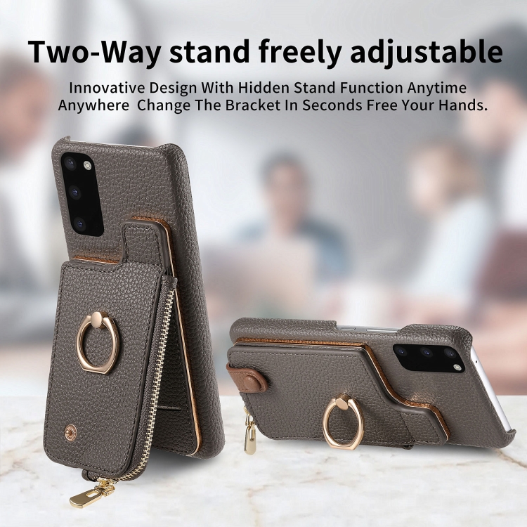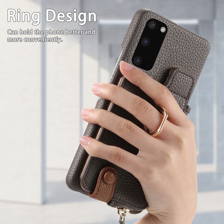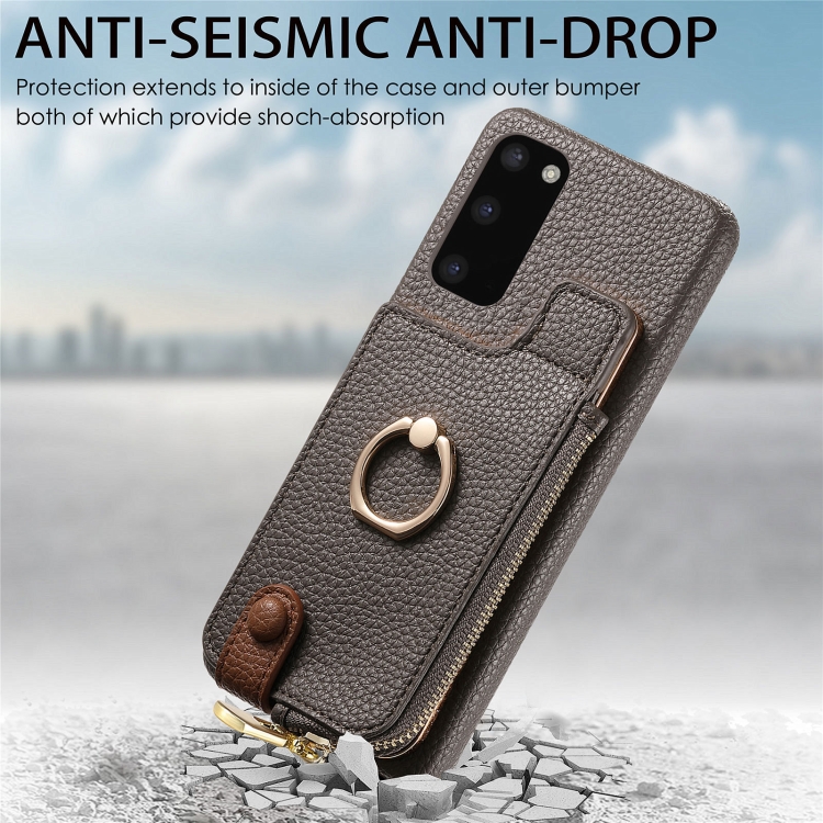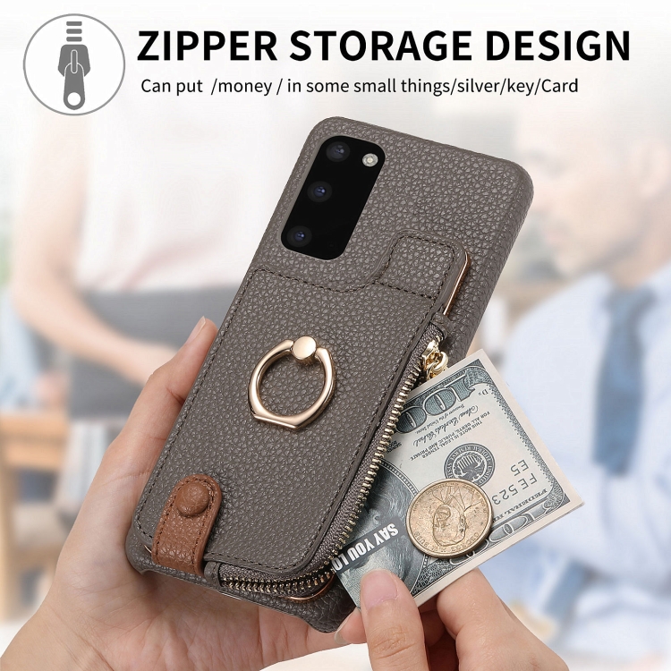 Funda para Samsung Galaxy S20 Litchi Leather Oil Edge Ring Zipper Wallet Back (Gris)