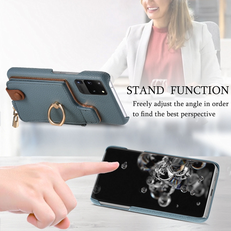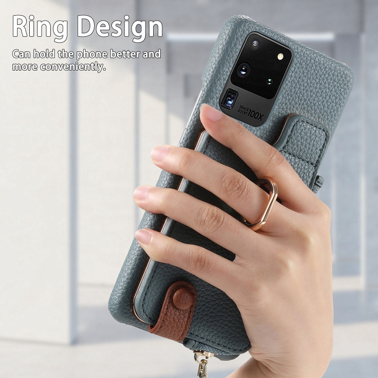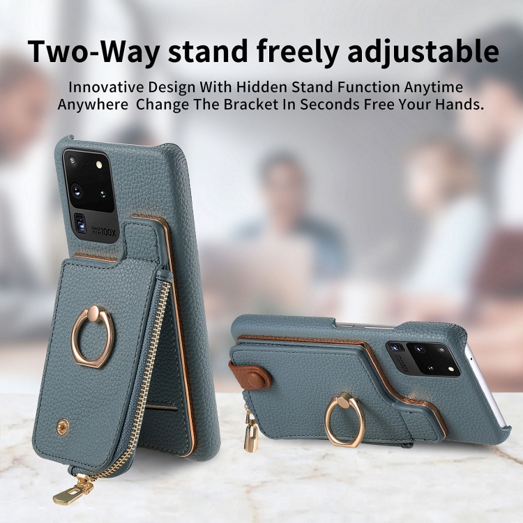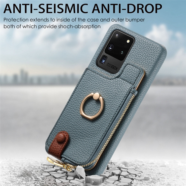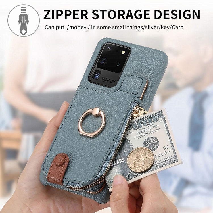 Funda para Samsung Galaxy S20 Ultra Litchi Leather Oil Edge Ring Zipper Wallet Back (Azul)