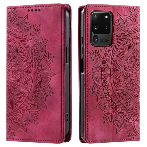 Funda de Cuero Magnética Totem para Samsung Galaxy S20 Ultra en Relieve (Rojo)