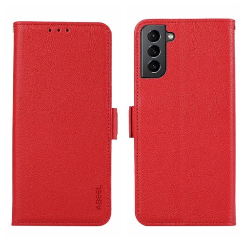 Funda para Teléfono Samsung Galaxy S21 5G Abeel Cuero Patrón Litchi Magnético (Rojo)