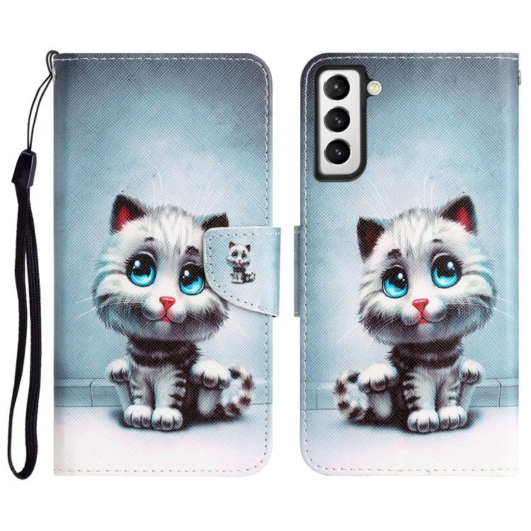 Para Samsung Galaxy S21+ 5G Estuche para teléfono de cuero con dibujo coloreado (ojos azules)