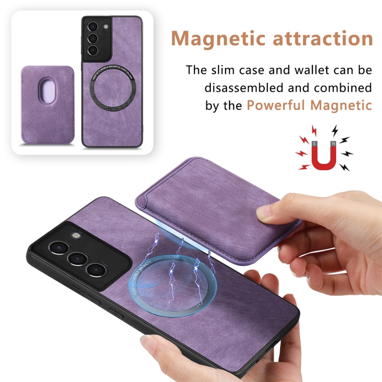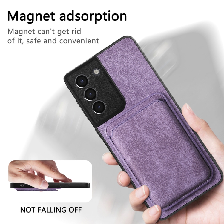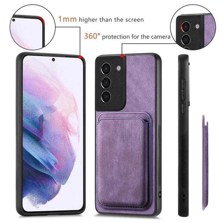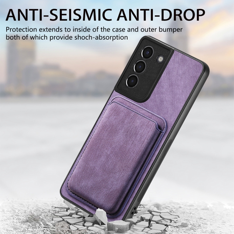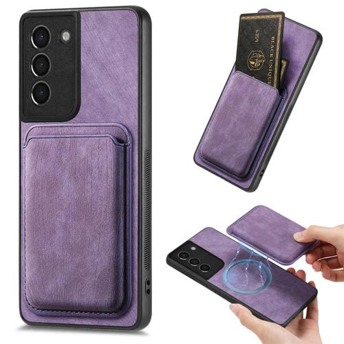 Funda de teléfono Samsung Galaxy S21 5G magnética con bolsa de tarjeta de cuero retro (Púrpura)