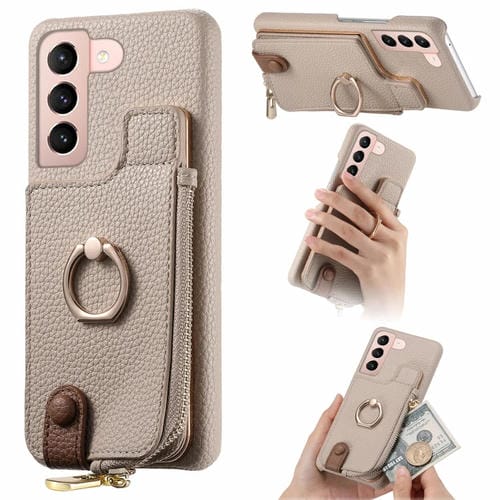 Funda para Samsung Galaxy S21 5G Litchi Leather Oil Edge Ring Zipper Wallet Back (Blanco)
