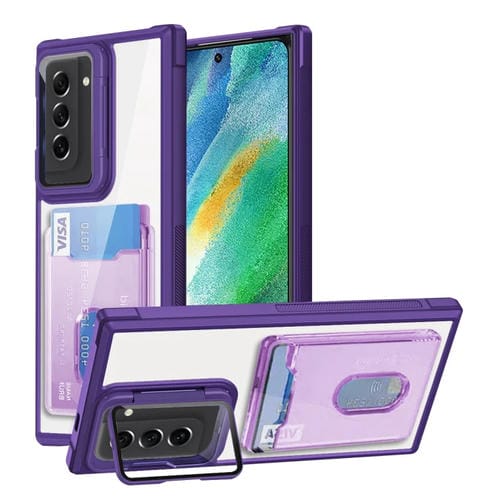 Estuche para Teléfono Samsung Galaxy S21 FE 5G TPU Híbrido Acrílico con Soporte para Tarjeta (Púrpura)