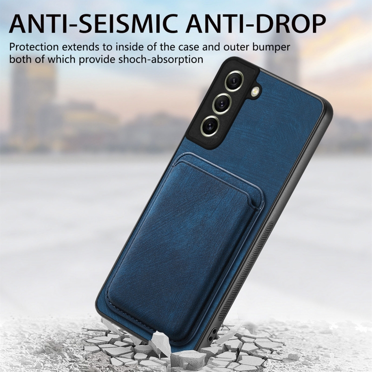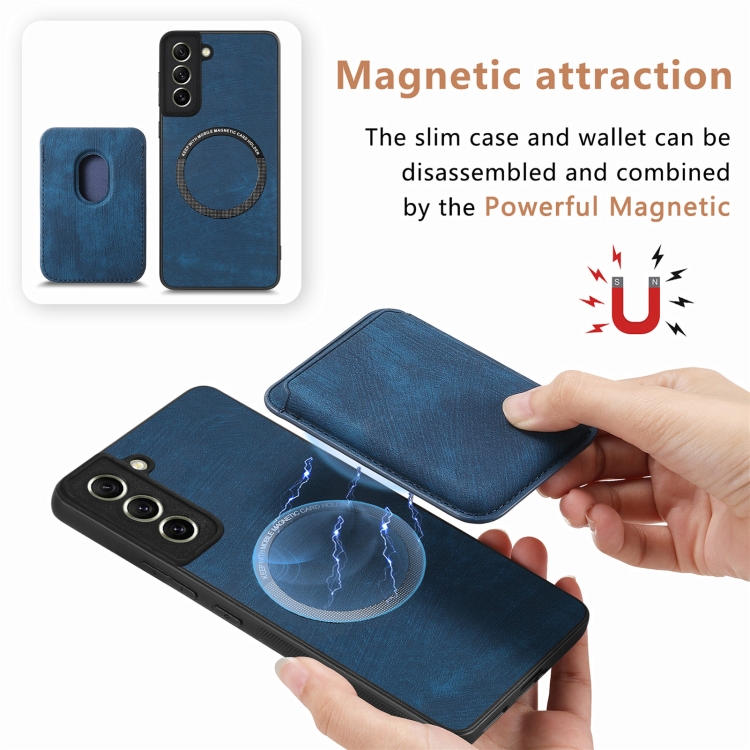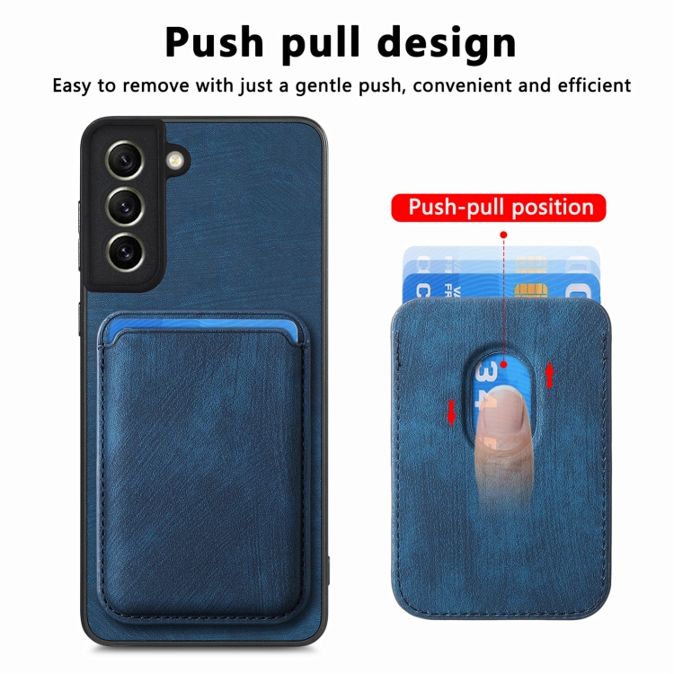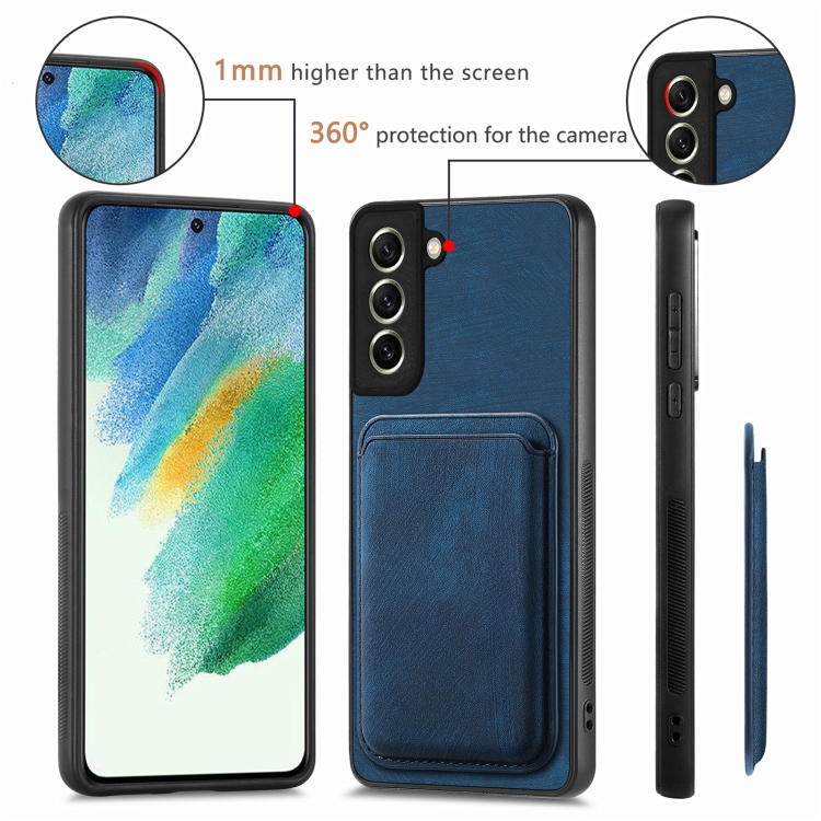 Funda de Teléfono Samsung Galaxy S21 FE 5G Magnética con Bolsa de Tarjeta de Cuero Retro (Azul)