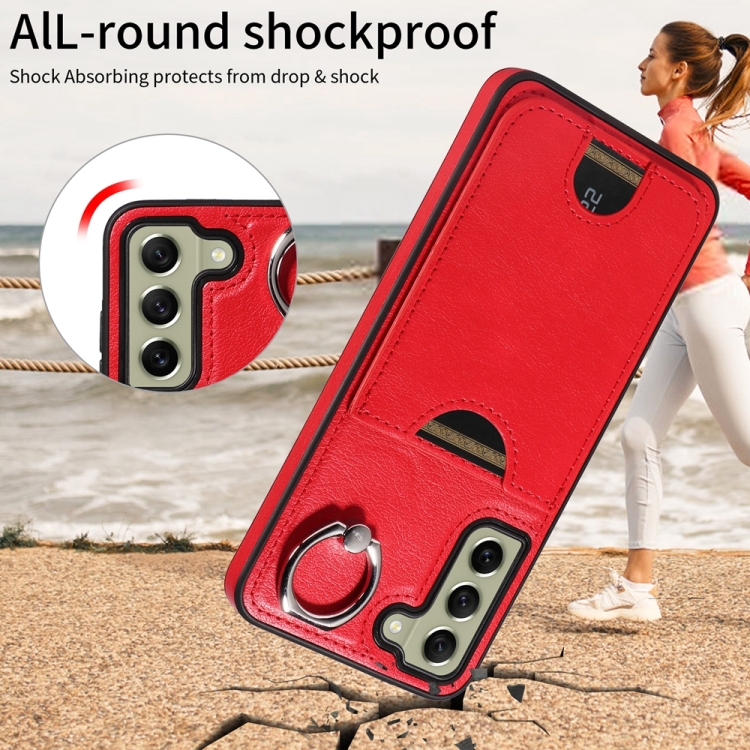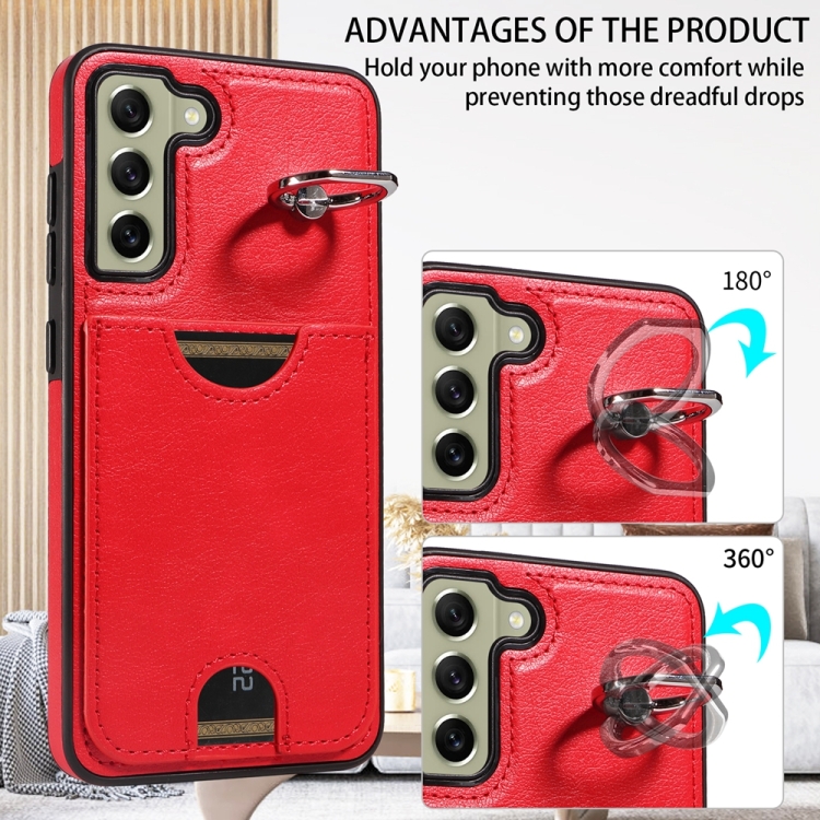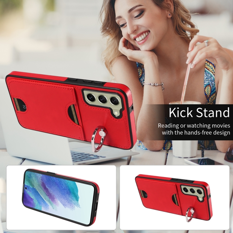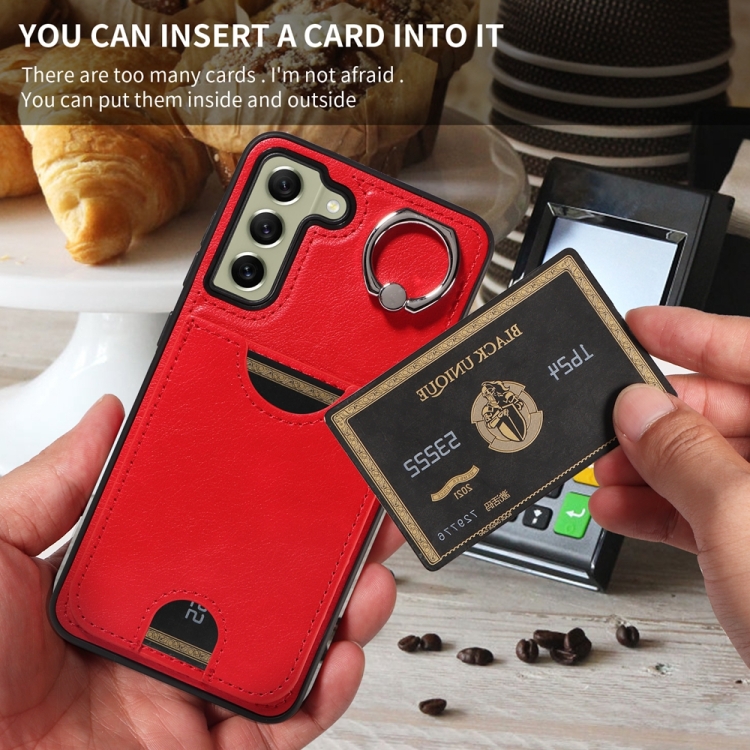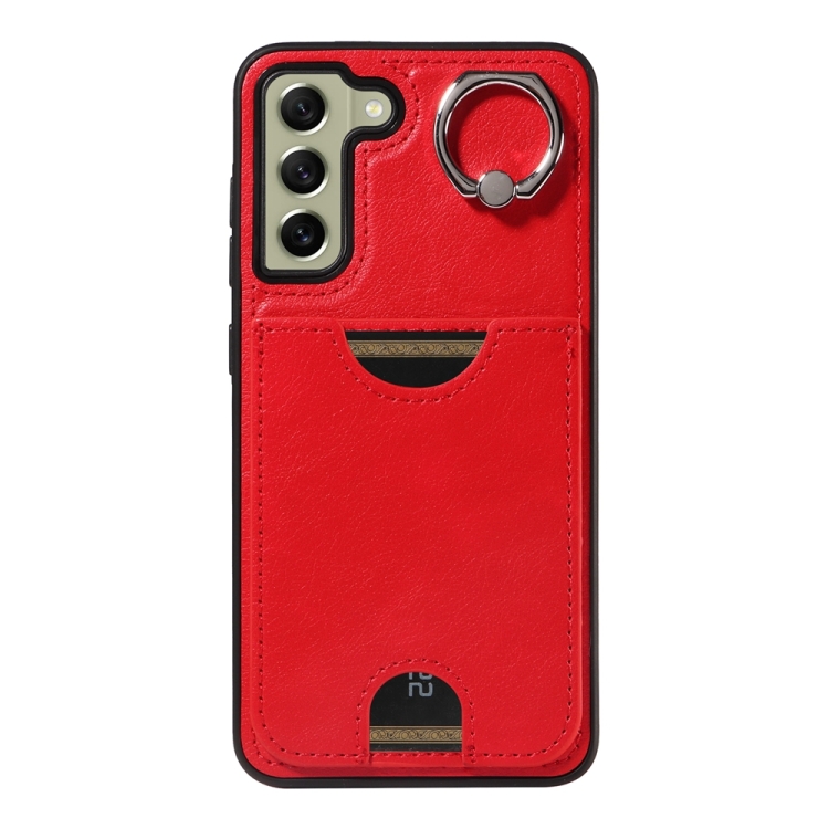 Funda para teléfono Samsung Galaxy S21 FE 5G con soporte para anillo y ranura para tarjeta (Rojo)