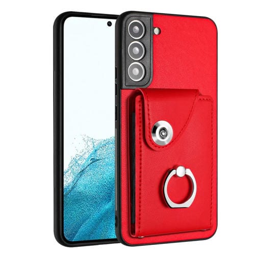 Funda para Teléfono Samsung Galaxy S21 FE 5G Pu con Soporte para Anillo y Bolsa para Tarjeta (Rojo)