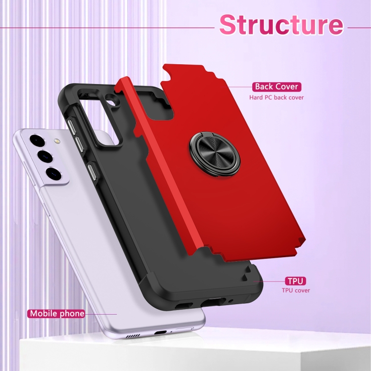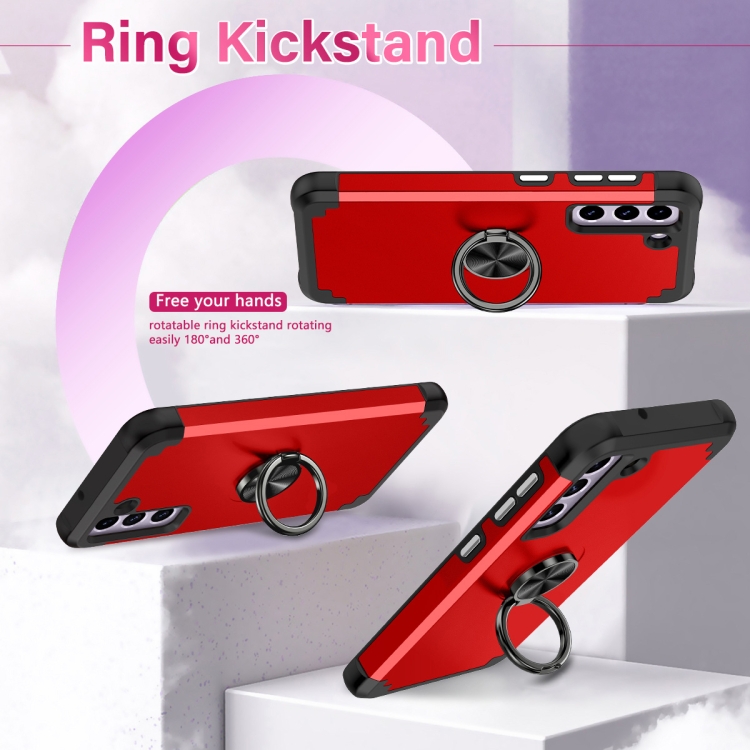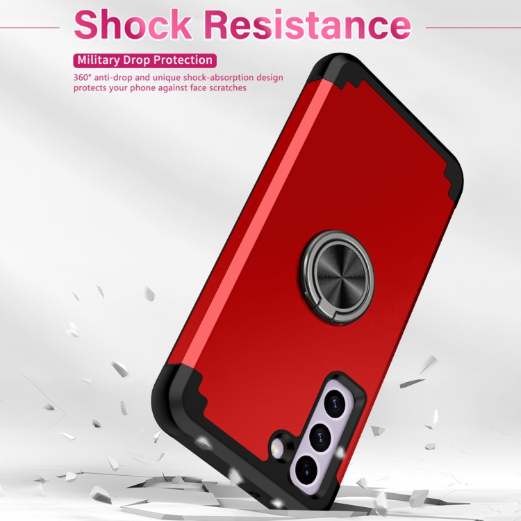 Funda Magnética para Samsung Galaxy S21 FE 5G L2 con Soporte de Anillo Giratorio (Rojo)