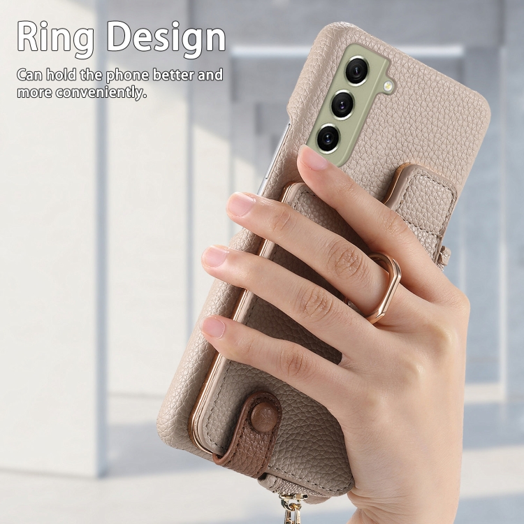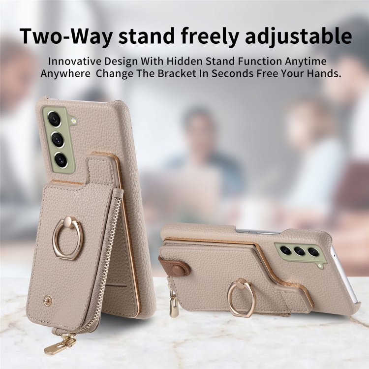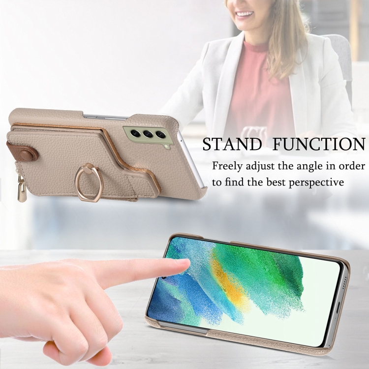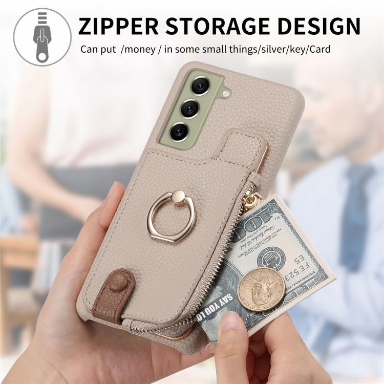 Funda para Teléfono Samsung Galaxy S21 FE 5G Litchi Leather Oil Edge Ring Zipper Wallet (Blanco)