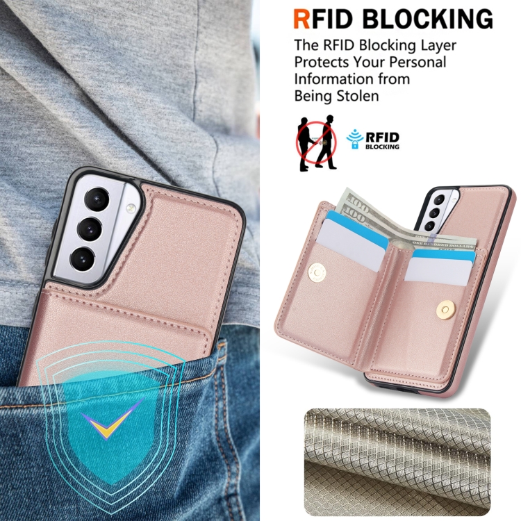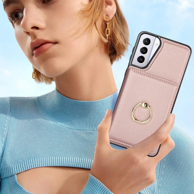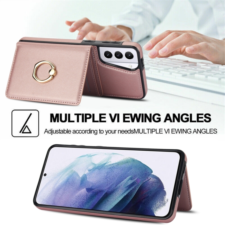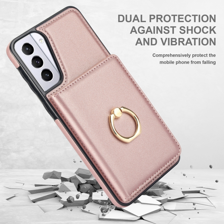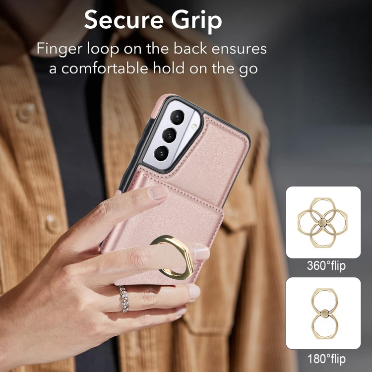 Estuche para Teléfono Samsung Galaxy S21 FE 5G Rfid Tarjeta Antirrobo con Soporte para Anillo (Oro Rosa)
