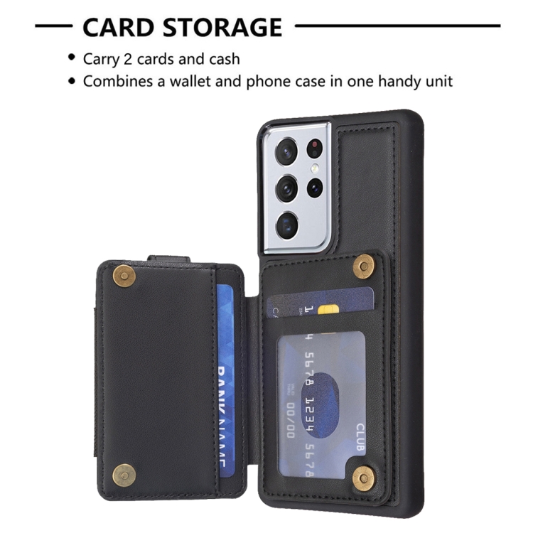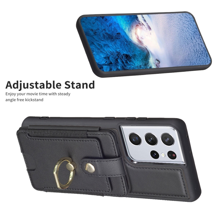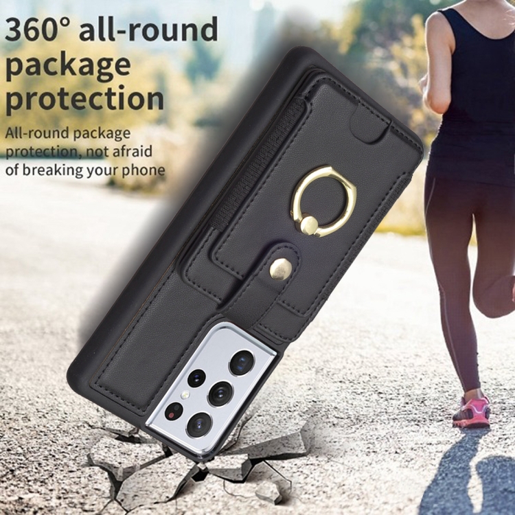 Para Samsung Galaxy S21 Ultra 5G BF27 Anillo de metal Tarjeta Bolsa Titular Caja del teléfono (Negro)