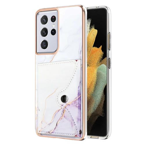 Estuche para Teléfono Samsung Galaxy S21 Ultra 5G con Ranura para Tarjeta IMD y Patrón de Mármol (Blanco y Morado)