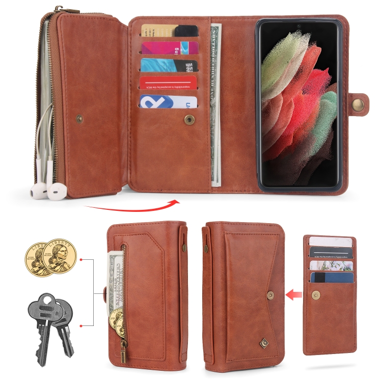 Funda para Teléfono Samsung Galaxy S21 Ultra 5G Cuero Billetera Cremallera Multifuncional (Naranja)