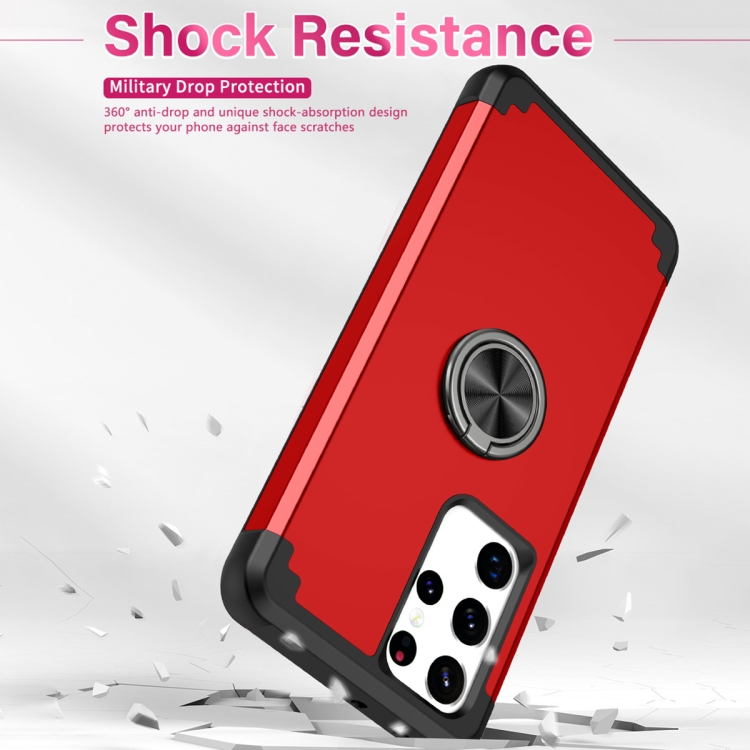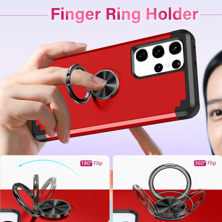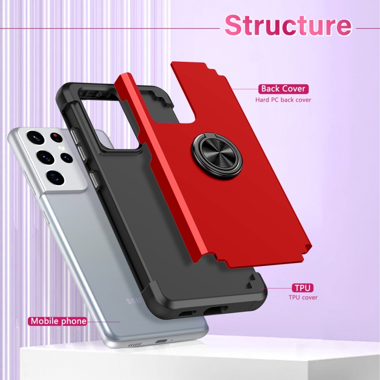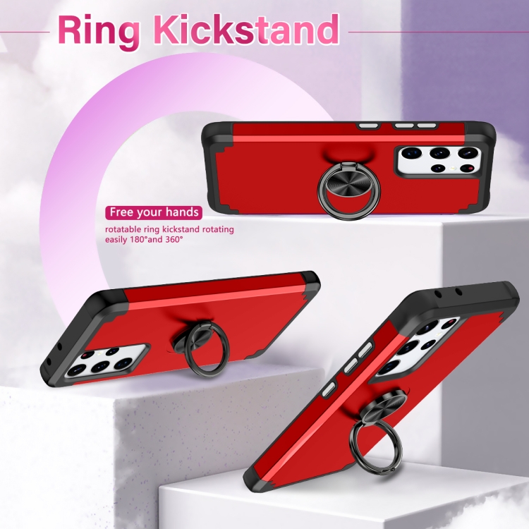 Funda Magnética Samsung Galaxy S21 Ultra 5G L2 con Soporte de Anillo Giratorio (Rojo)