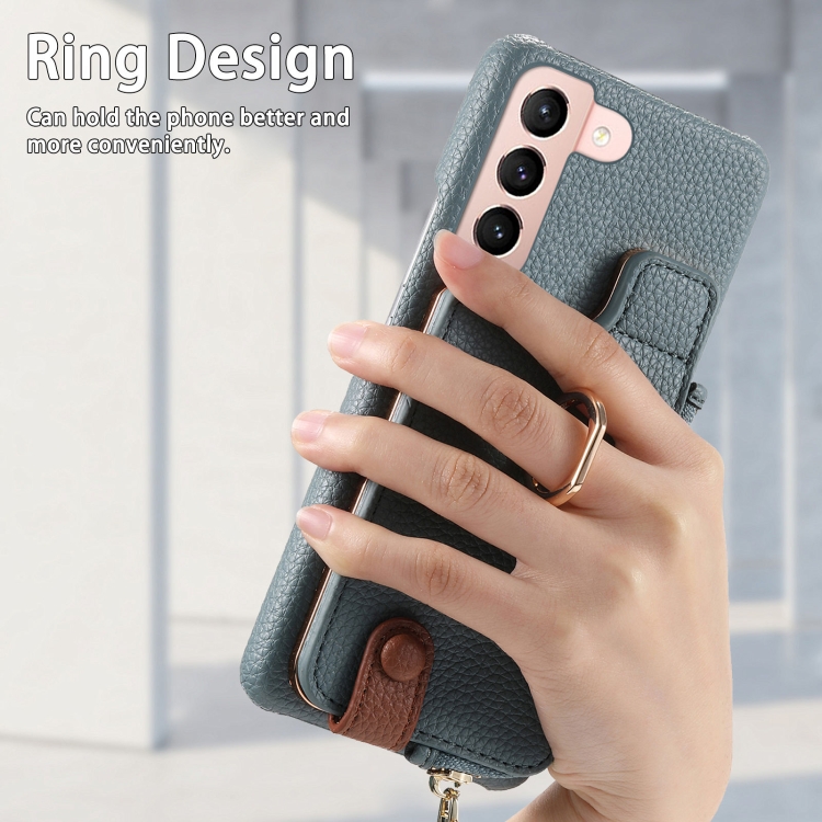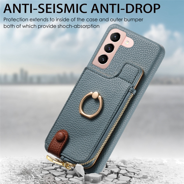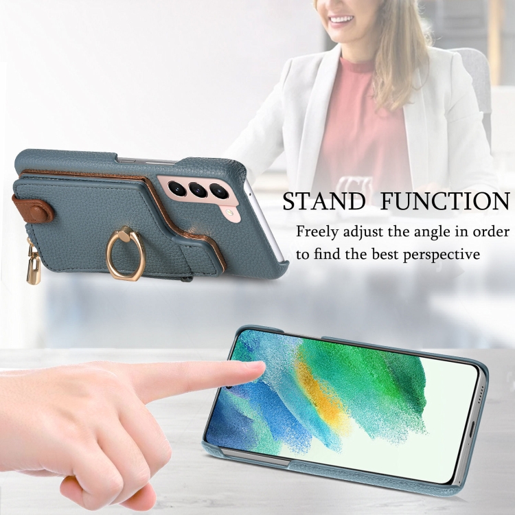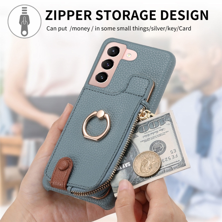 Funda para Teléfono Samsung Galaxy S21 Ultra 5G Litchi Leather Oil Edge Ring Zipper Wallet (Azul)
