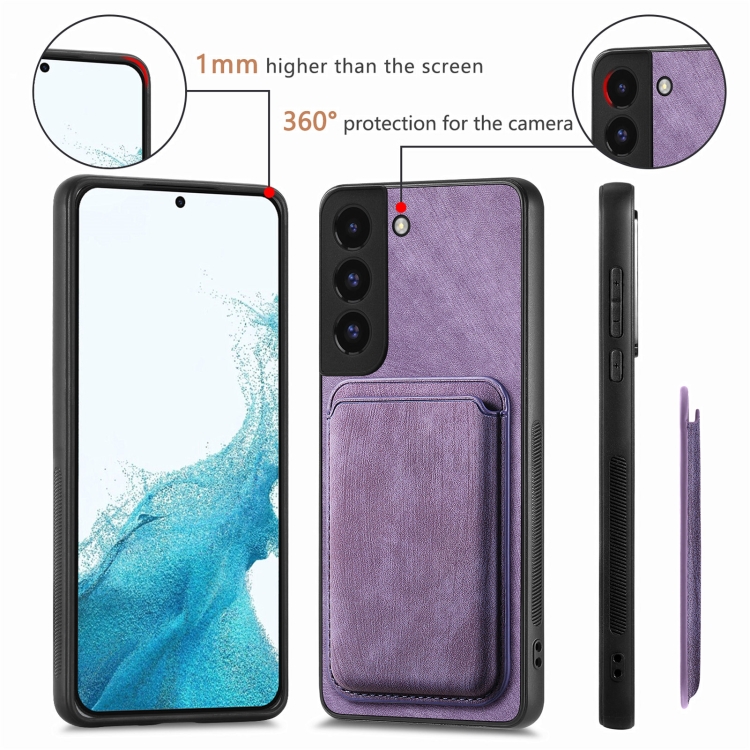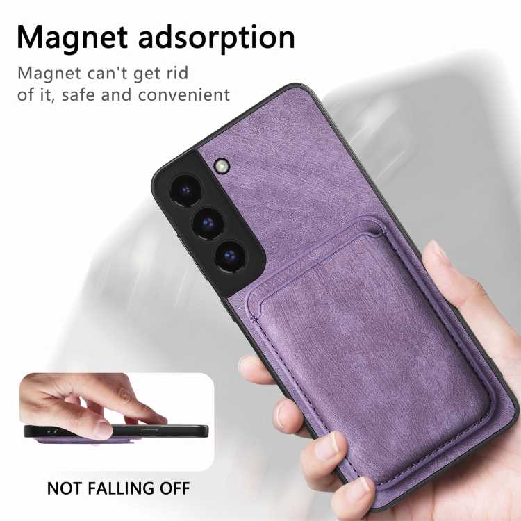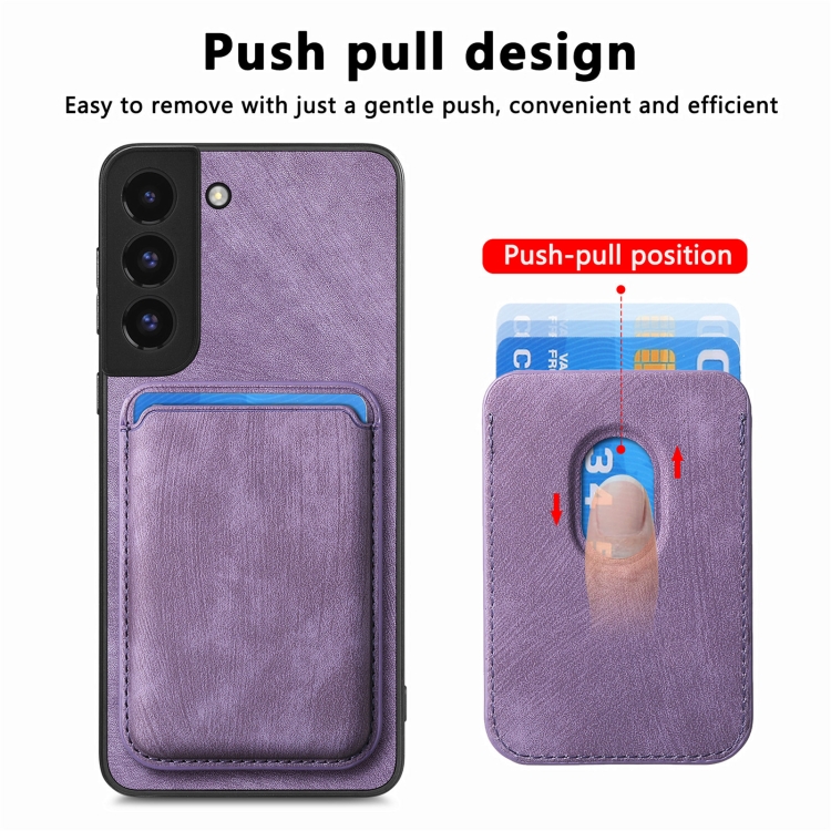 Funda de Teléfono Samsung Galaxy S22 + 5G Magnética con Bolsa de Tarjeta de Cuero Retro (Púrpura)