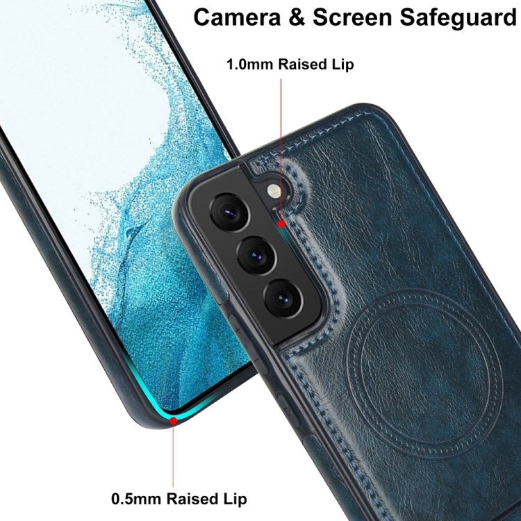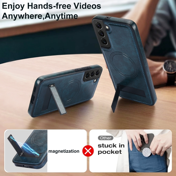 Funda para teléfono Samsung Galaxy S22 + 5G Magsafe con soporte invisible de cuero retro (Azul)