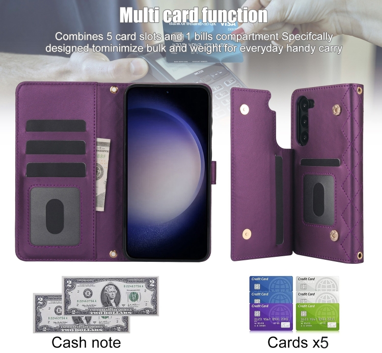 Estuche para Teléfono Samsung Galaxy S23 5G Crossbody Cuero Rómbico Multifunción (Púrpura Oscuro)