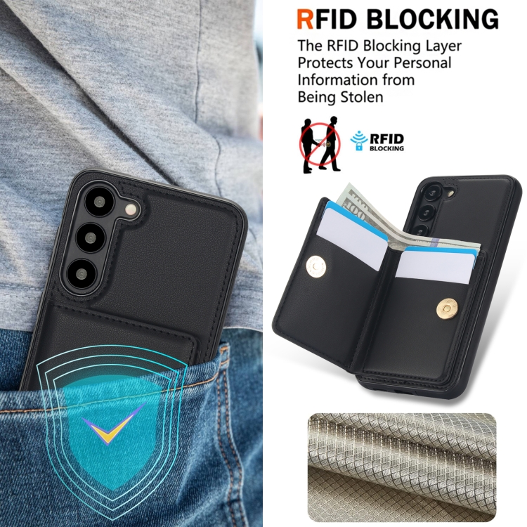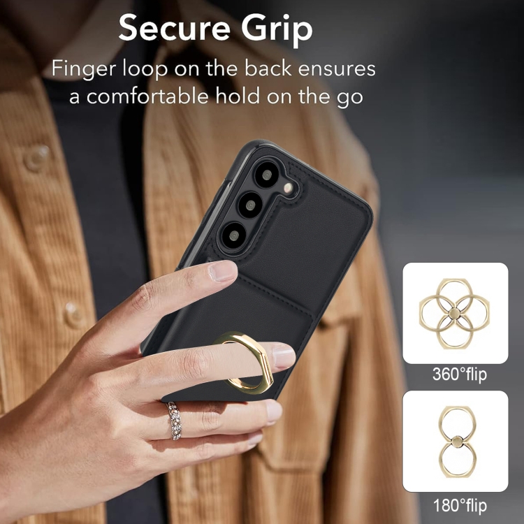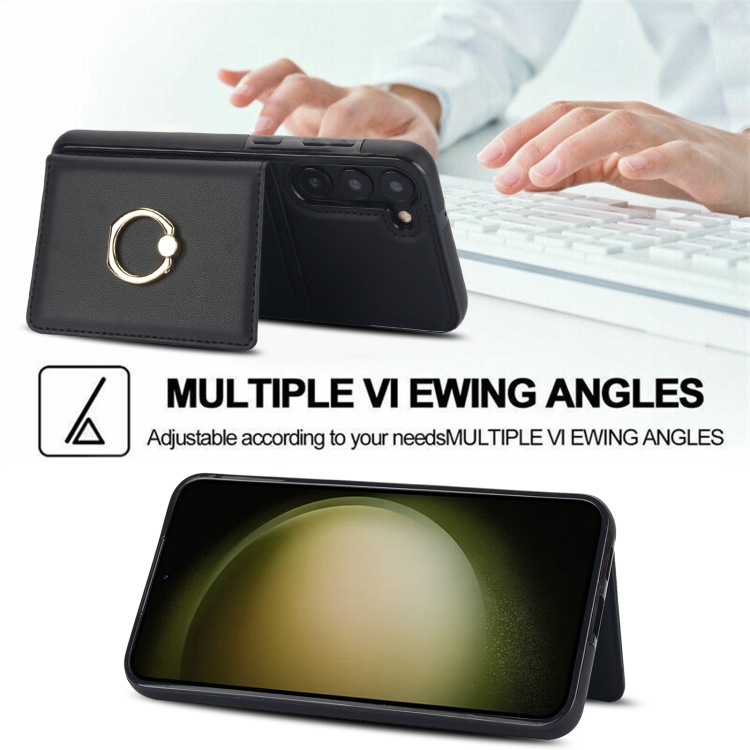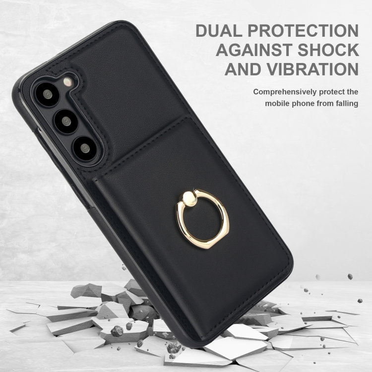 Estuche para teléfono Samsung Galaxy S23 5G Rfid tarjeta antirrobo con soporte para anillo (Negro)
