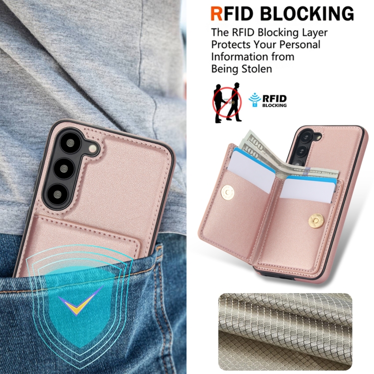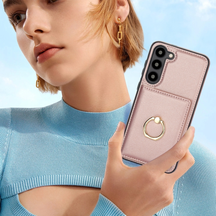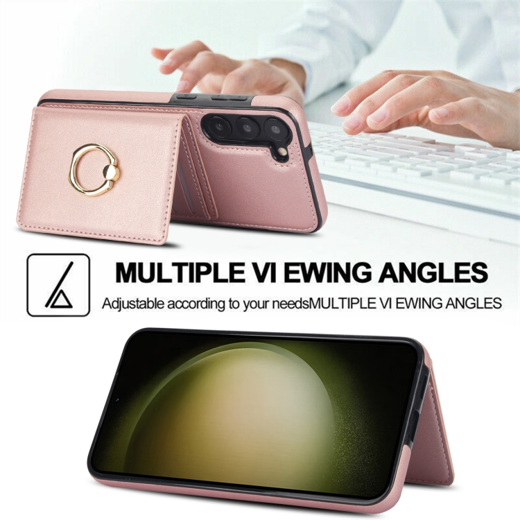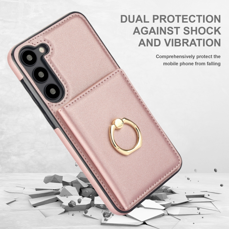Estuche para teléfono Samsung Galaxy S23 5G Rfid Tarjeta Antirrobo con Soporte para Anillo (Oro Rosa)