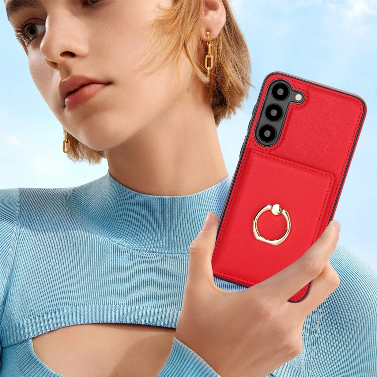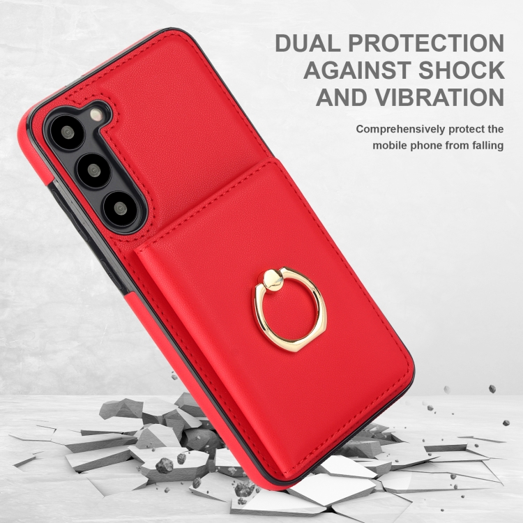Estuche para Teléfono Samsung Galaxy S23 5G Rfid Tarjeta Antirrobo con Soporte para Anillo (Rojo)