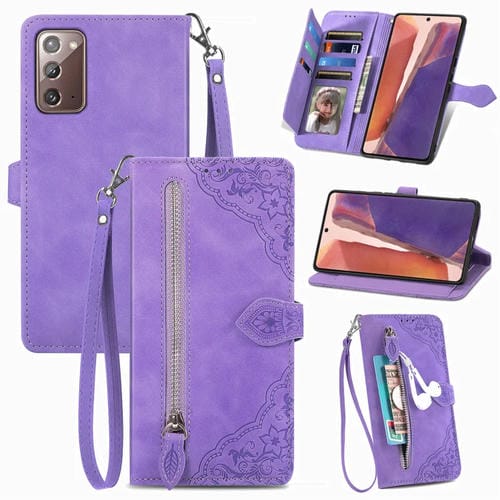Funda para Samsung Galaxy S24+ 5G Cuero Cremallera Flores en Relieve (Púrpura)