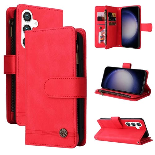 Funda para Teléfono Samsung Galaxy S24 Skin Feel Cuero con Cremallera y Billetera (Rojo)